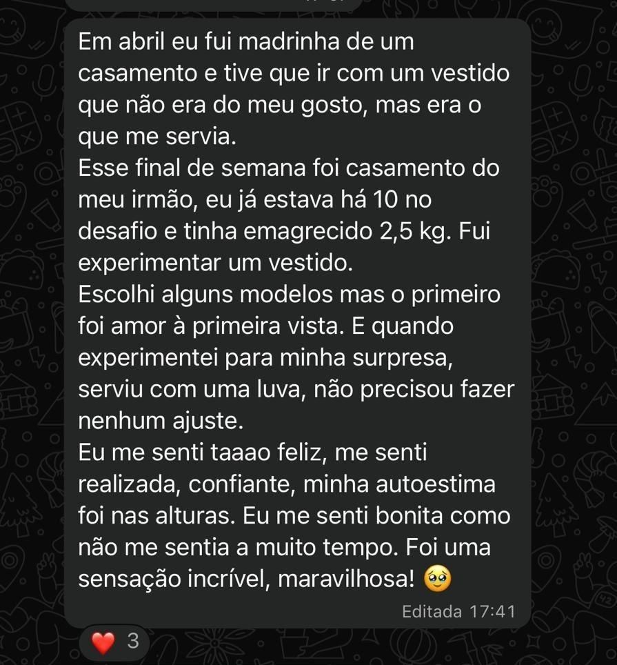 Eu consegui! Achei o caminho e perdi 35 OFF. Quando isso aconteceu, minhas amigas vieram correndo me pedir ajuda! Criei um grupo e apliquei os mesmos códigos nelas! Parecia impossível, mas, aconteceu! Minhas 8 amigas perderam pelo menos 10 OFF cada!!! Foi incrível!!! Por isso eu criei o MOVIMENTO CÓDIGO MAGRA, para poder ajudar muito mais mulheres que passam por essa dor terrível que eu passei!!! Nunca mais vamos chorar assim!!!